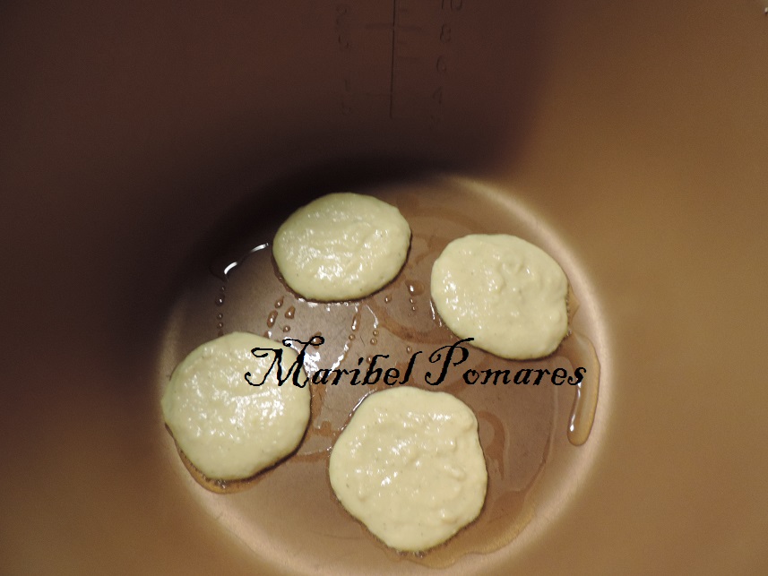 Untamos la cubeta con un poco de aceite y vamos poniendo una cucharada de la mezcla y dejamos que se vayan haciendo.