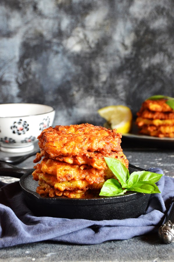 El otro día os dejaba unas tortitas de batata y coles y hoy os dejo estas otras igualmente deliciosas, crujientes por fuera y blanditas por dentro. Son muy sencillas de preparar, perfectas para servir como guarnición o aperitivo acompañadas de nuestra salsita favorita.