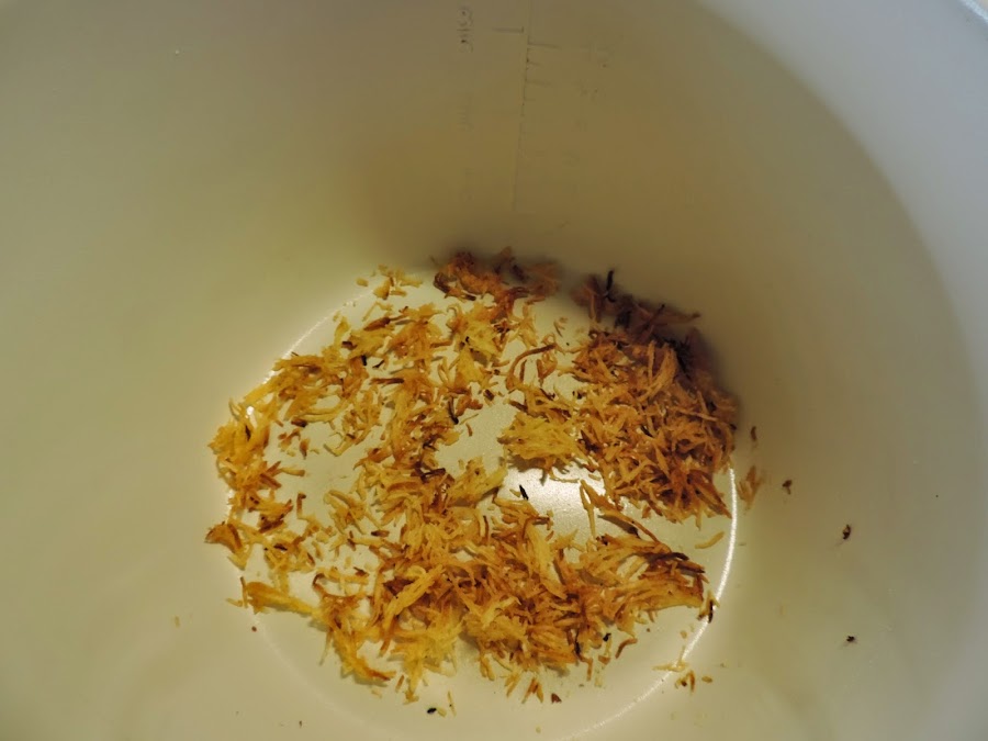 Le echamos unas gotas por encima para que se vayan dorando. El aceite se va a los lados de la cubeta.