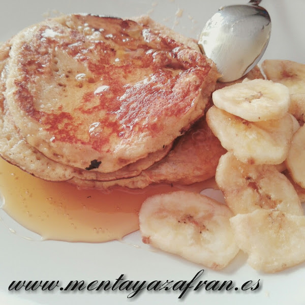En mi caso eché por encima una cucharadita de miel de mi pueblo (es la mejor, claro está! jajaja), así que quedaron unas tortitas muy sanas y dulces pero sin saltarse demasiado la dieta, puesto que la miel en su justa medida nos aporta muchos beneficios ;)