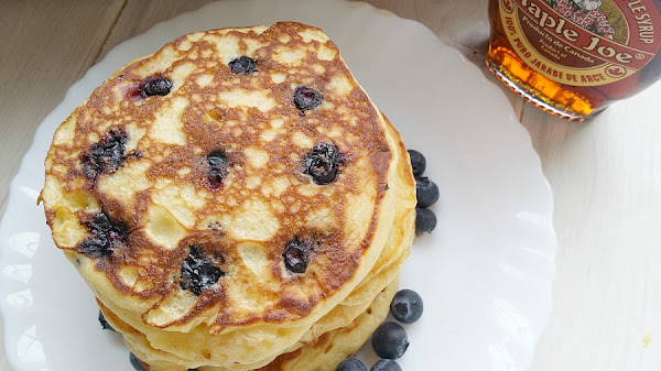 Para suplicar vuestra comprensión os dejo hoy unas de las mejores tortitas del mundo, las tortitas de yogur, a las que en esta ocasión le he puesto unos arándanos frescos que encontré en oferta. Deliciosas también con unas frambuesas, o simplemente con un poquito de sirope de arce o de sirope de chocolate...