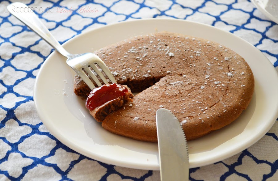 Y ya adivináis qué pasó al descubrirla antes de desayunar ¿verdad? ¡Correcto! El sábado por la mañana desayunamos unas ricas tortitas de chocolate jajajaja. No tengo remedio, no dudé ni un segundo y medio dormida salí disparada hacia la cocina para prepararlas.