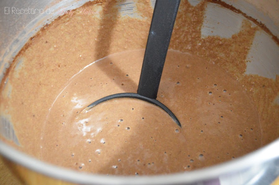 Con la ayuda de una batidora mezcla todos los ingredientes hasta que te quede una masa suave y homogénea. Si no tienes batidora lo puedes hacer perfectamente a mano, es una masa muy sencilla y la tendrás lista en un momento. No hay un orden en concreto, pero siempre es más cómodo intercalar ingredientes sólidos y líquidos para favorecer su integración en la masa.