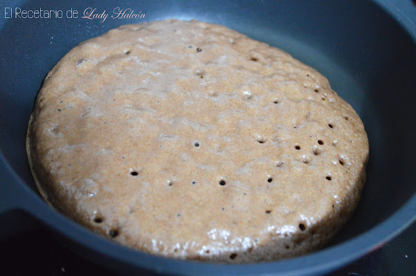 Deja que la masa vaya cuajando poco a poco y, cuando veas que empieza a estar llena de burbujas y el borde está un poco más seco, dale la vuelta para que se haga el otro lado.
