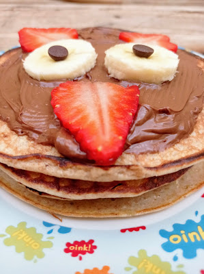 Estas tortitas son ideales para todos, están buenísimas, se hacen en un momento y las podéis decorar con chocolate y fruta para hacer una merienda super divertida para los más peques.