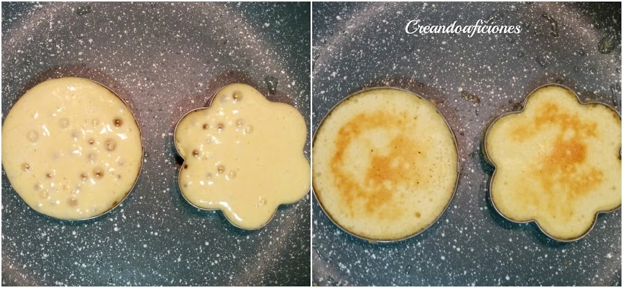 Esta versión de tortitas japonesas que se hacen con un molde redondo para hacer galletas, pero que podéis utilizar cualquier otro, son esponjosas y suaves. Con estos ingredientes salen unas 15 tortitas, pero dependerá del molde que utilicemos. Empezamos.