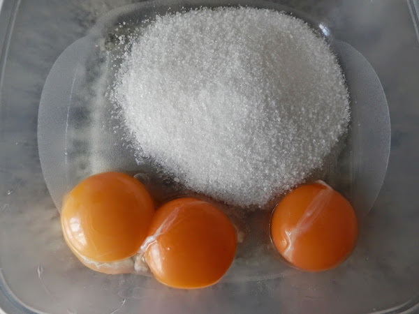 Batimos las yemas con el azúcar y batimos bien hasta que queden blanquecinas, es el momento de añadir la vainilla.