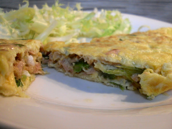 Batir los huevos, con una pizca de sal y pimienta molida al gusto. Añadir el atún escurrido de aceite y las ramitas de Bimi, mezclar.