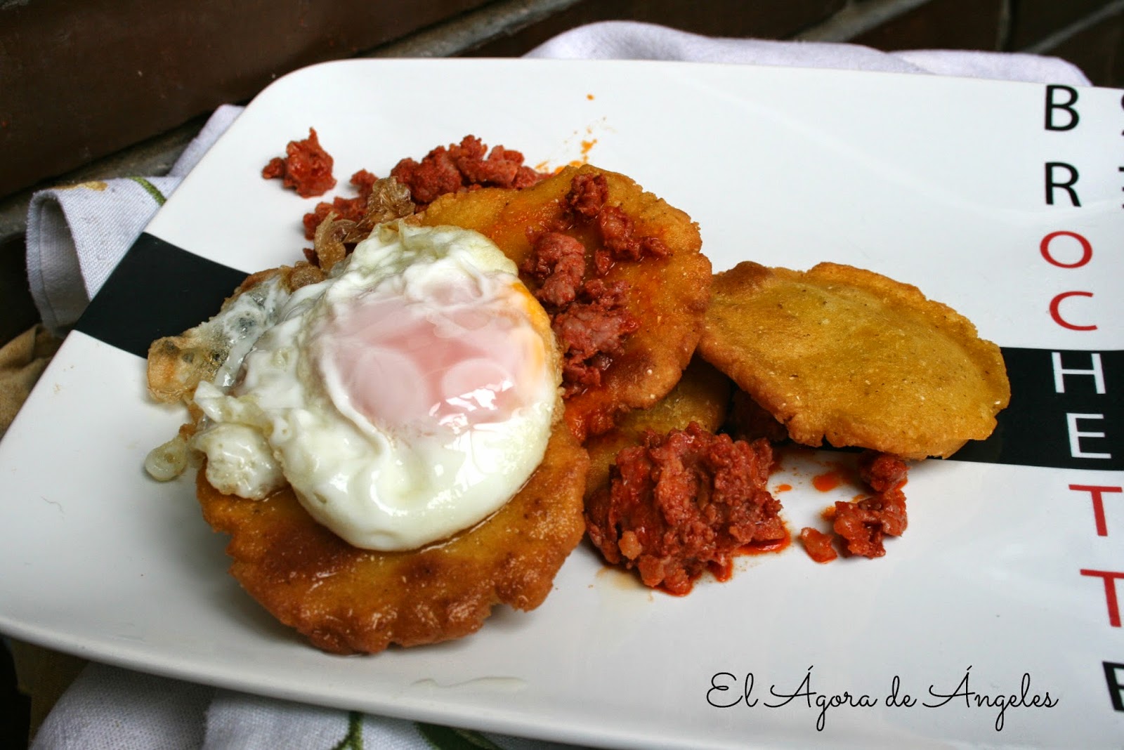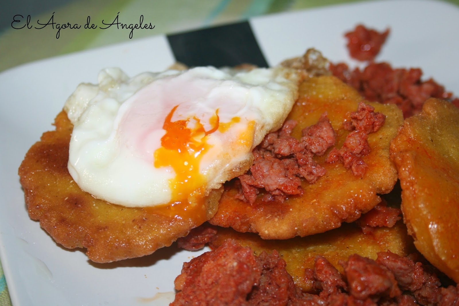 Emplatamos poniendo los tortos en la base, sobre ellos el picadillo y encima el huevo frito.