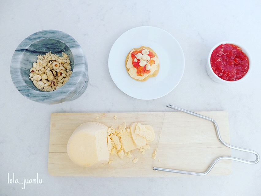 Hoy vamos a preparar una receta muy sencilla que puede ser un gran aperitivo o tapa con la que podemos sorprender a nuestros invitados, tostas de Afuegal Pitu con mermelada de tomate y avellanas.