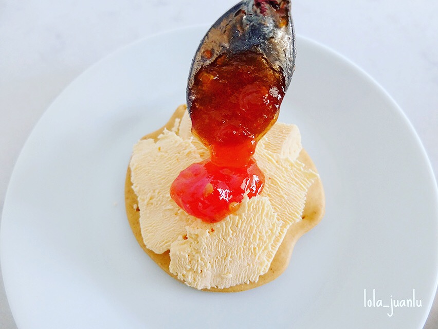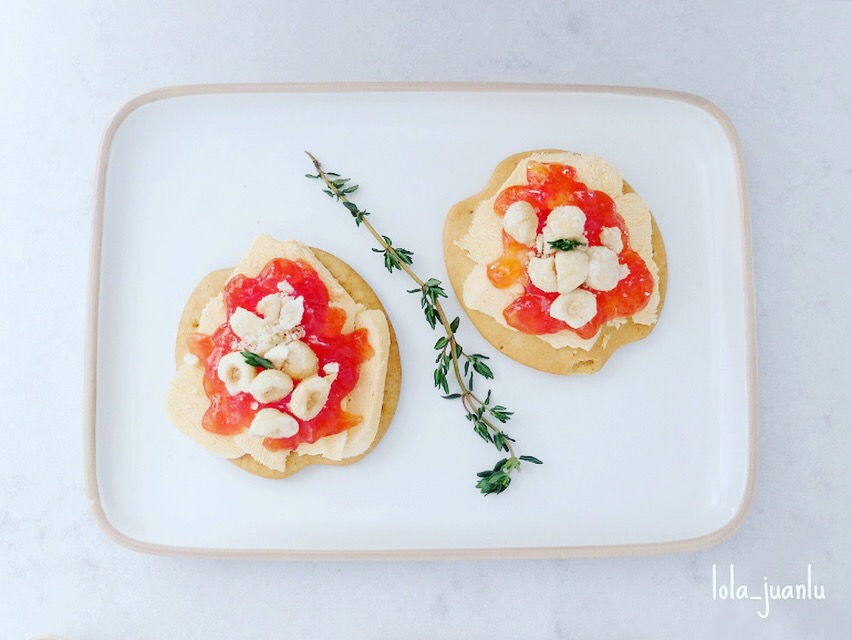 A continuación colocamos un poco de mermelada de tomate sobre el queso.