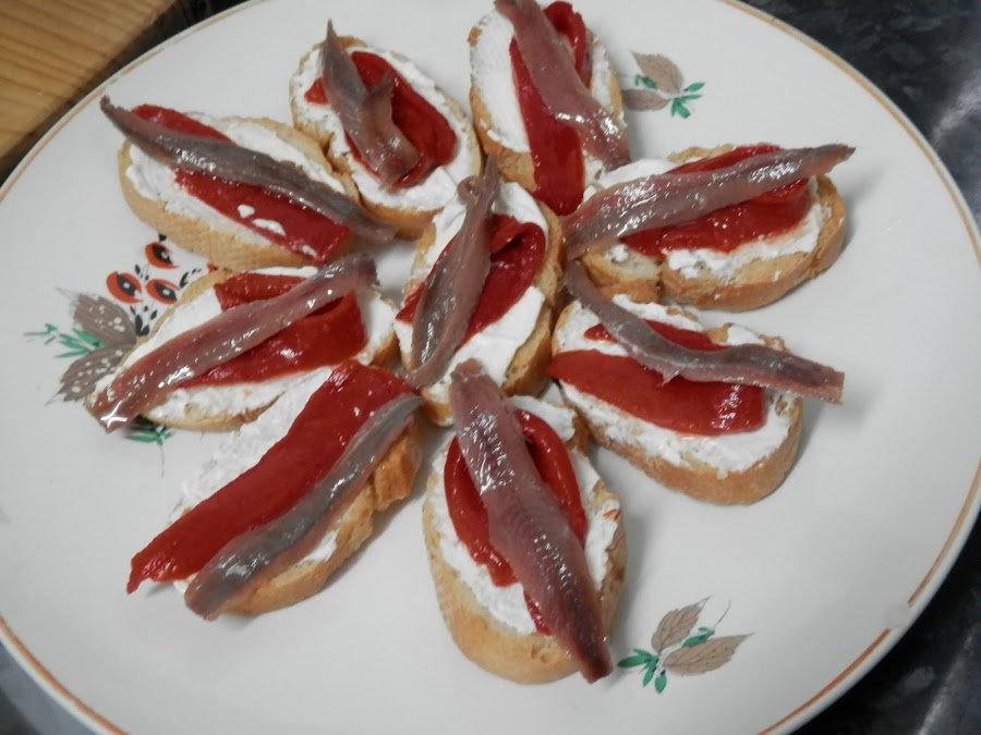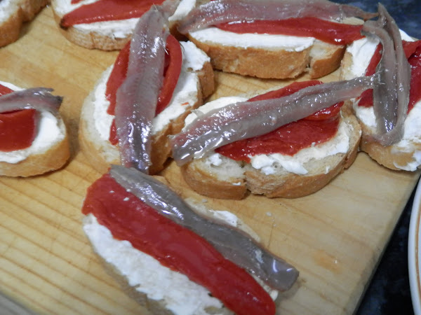 Ponlos encima de las tostaditas y encima de él, pon la anchoa.