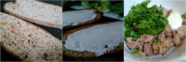 Abrimos las latas de atún y escurrimos el exceso de aceite. Pasamos el contenido a un bol, agregamos pimienta negra al gusto, el cilantro bien picado y la mayonesa ligera o la que uses. Mezclamos hasta integrar todo muy bien. Reservamos. También lavamos las hojas de lechuga y cortamos el aguacate en lonchas.