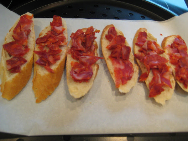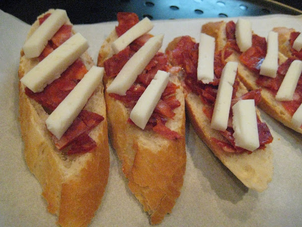 Cortar el chorizo en trocitos y ponérselos a la tosta.