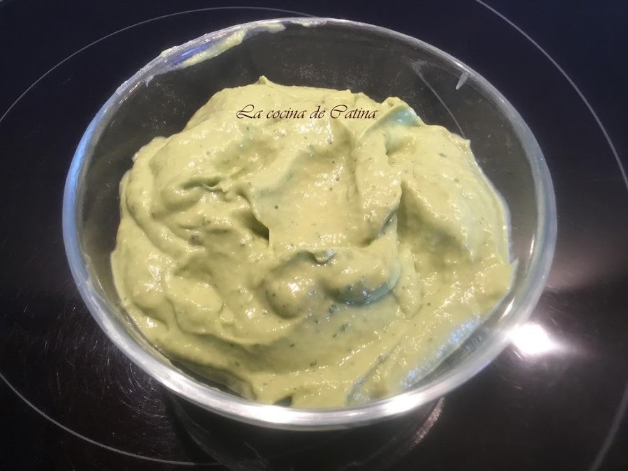 Cortamos en dos los aguacates, retiramos el hueso , reservamos la mitad de uno y trituramos el resto en la batidora con 3/4 de zumo de limón, el tabasco, las hojas de albahaca (reservando algunas hojitas para decorar), la cebolla picada y y una pizca de sal y pimienta.