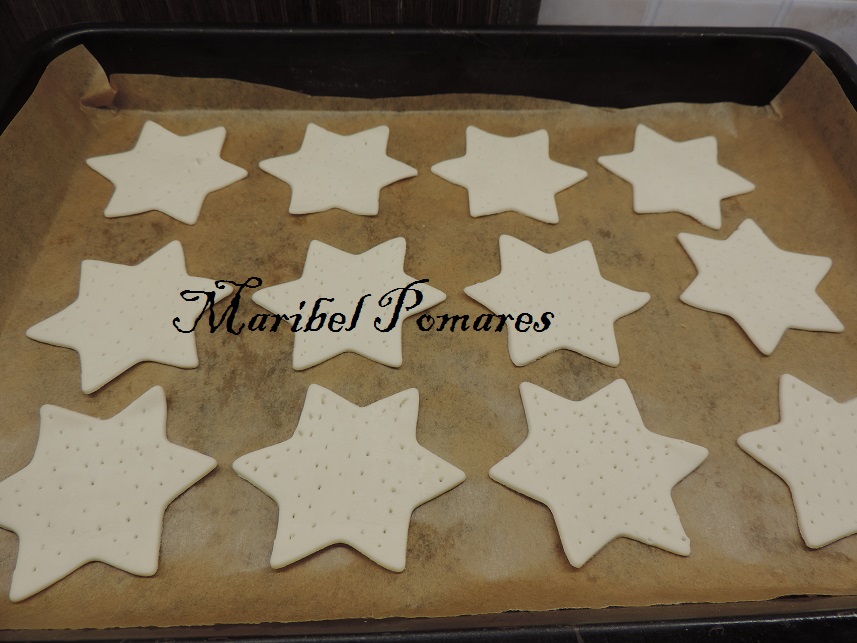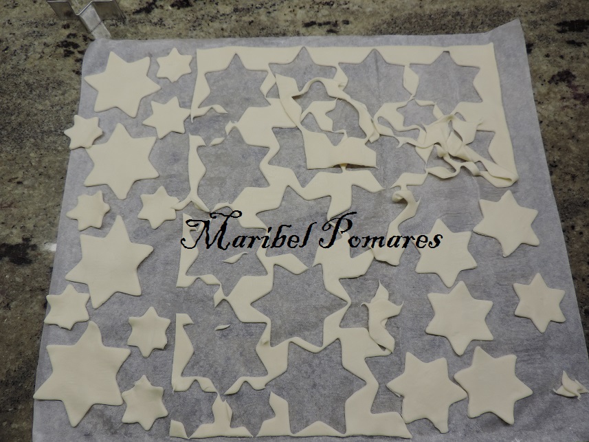 Extendemos la lámina de hojaldre y cortamos las estrellas con un cortapastas.