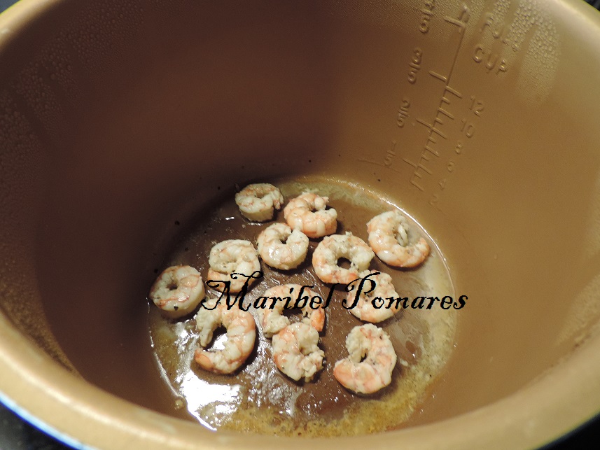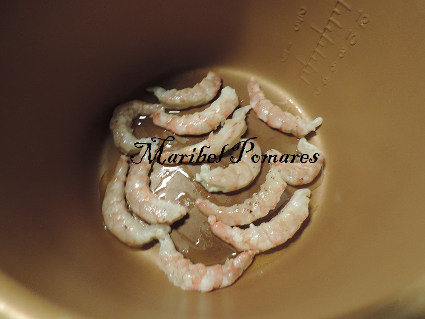 Escurrir bien y añadir las gambas.