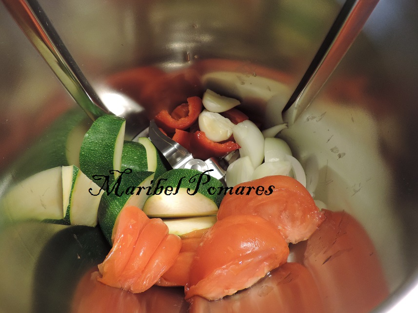 Poner las verduras en la Thermomix.