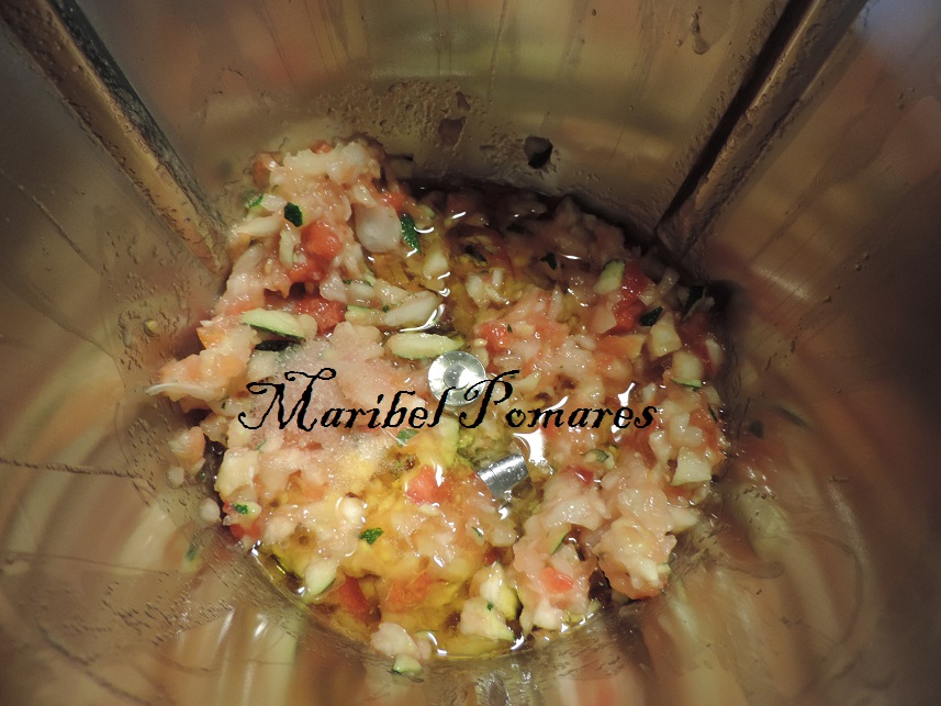 Programe 10 segundos, 5 velocidades, añadir el aceite y la sal.