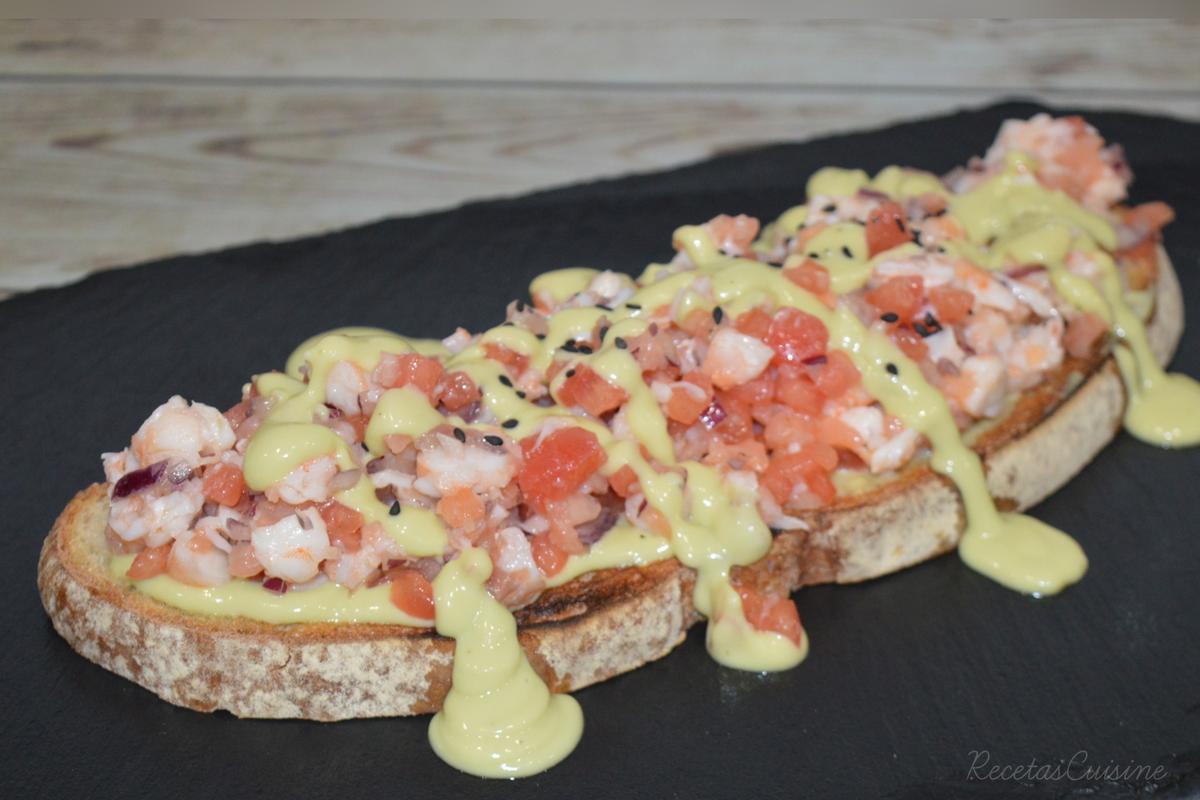 Tosta de Langostinos con Salsa de Aguacate y Yogur
