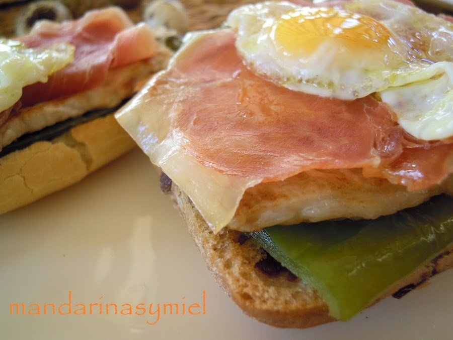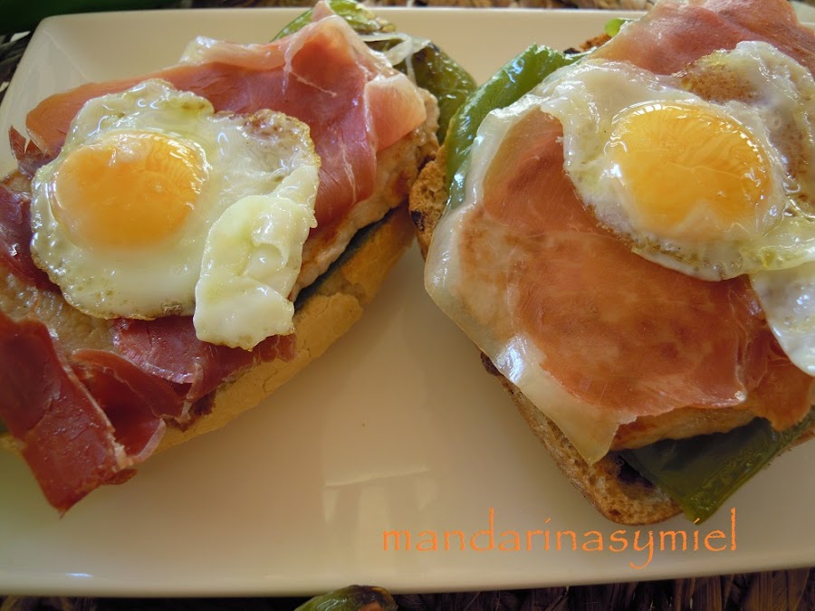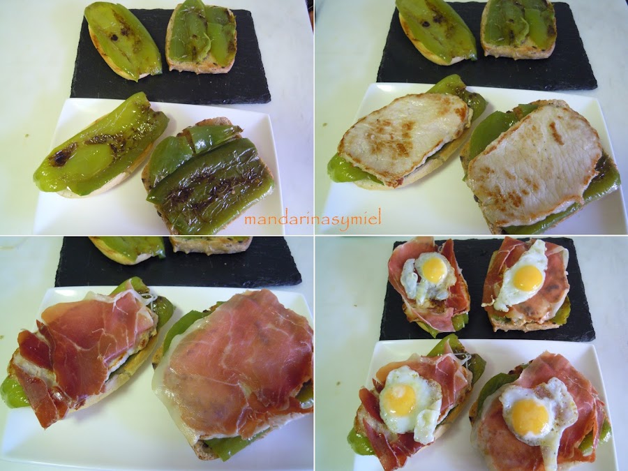 Tienes que ir montando la tosta tal como se hagan el pimiento, el lomo y el huevo para que el jamón coja su calor y suelte su grasita.