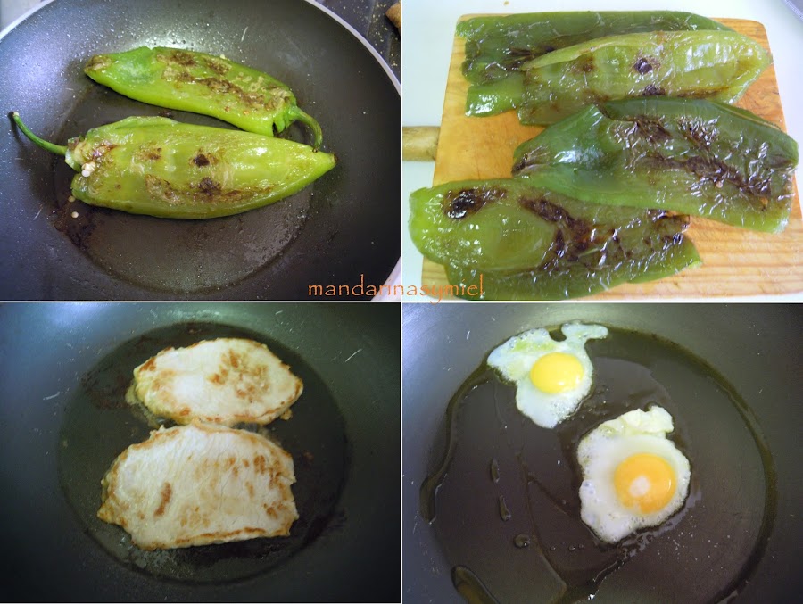Puedes cambiar la forma de cocinar los ingredientes, yo los he hecho a la plancha con un chorrito de aceite, pero puedes freir el pimiento, el lomo y los huevos.