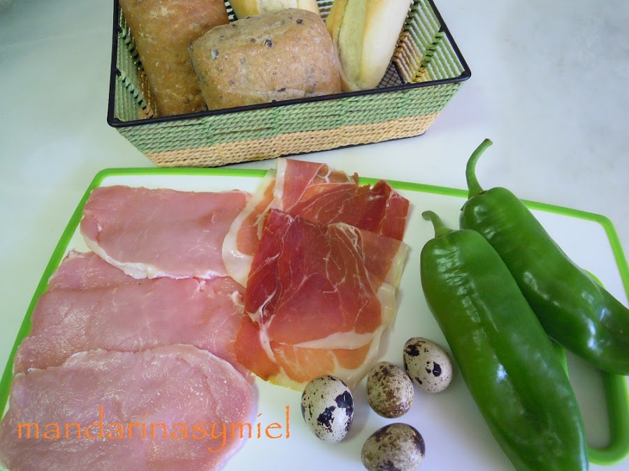 Bueno, vamos con la tosta de lomo, pimiento, jamón y huevo de codorniz