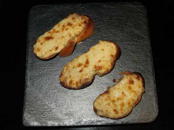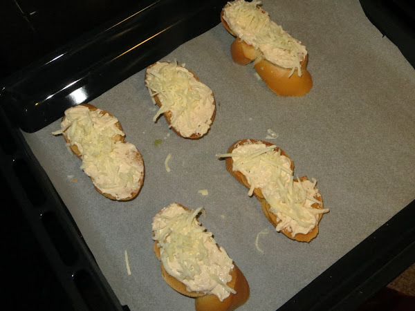 Sacamos las tostadas del horno y les ponemos la mezcla por encima, ponemos el resto de queso mozzarella que nos quedaba repartido entre todas las tostas y gratinamos en el horno durante cinco minutos. Sacamos y ya están listas para servir.