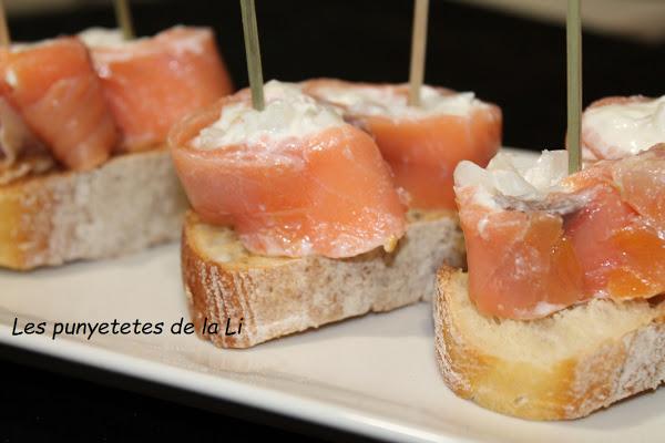 Tostamos el pan, cortamos a rodajas el salmón y servimos
