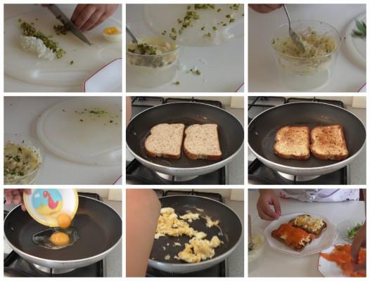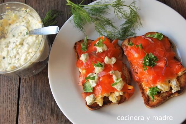Ahora solo nos queda montar las tostas de salmón con salsa tártara.