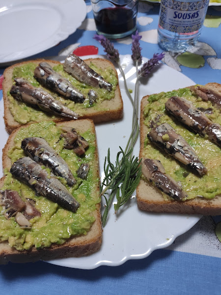 Tostamos dos rebanadas de pan. Las untamos con la mezcla anterior y añadimos unas hojitas de brotes de lechugas y las sardinas enteras o en trocitos o aplastadas. Al gusto del consumidor. Regamos con el aceite de oliva y adornamos con las rodajas de lima.