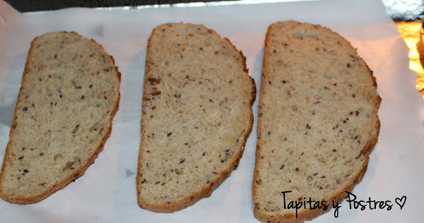 Primero tostaremos las rebanadas de pan en el horno o en el tostador, para que aguante bien los ingredientes.