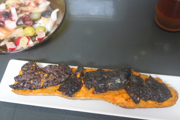Cubrimos el pan untado con la carne de las morcillas.