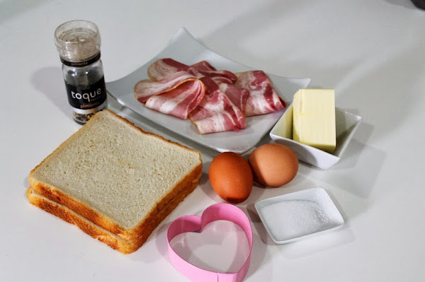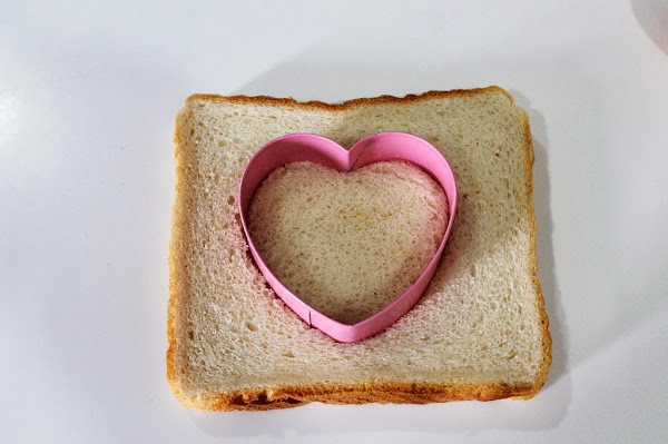 Hacemos un corazón con el molde en las rebanadas de pan.