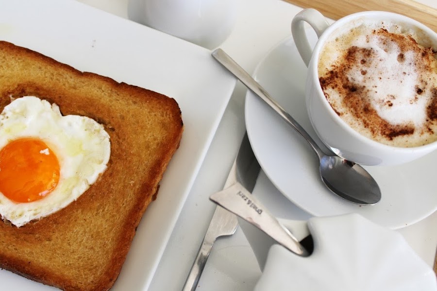 Para montar el plato ponemos la tostada y desmoldamos con cuidado el huevo del molde de corazón y lo metemos en el huevo también en forma de corazón de la tostada.