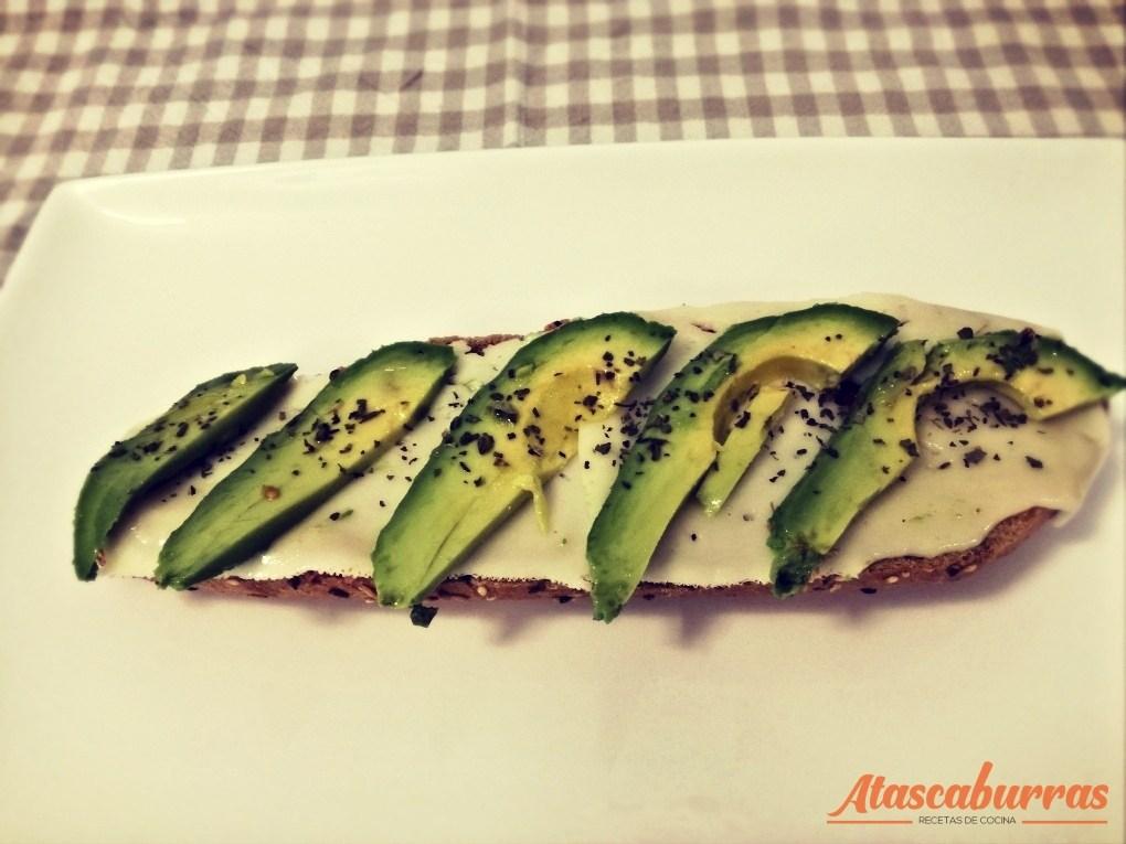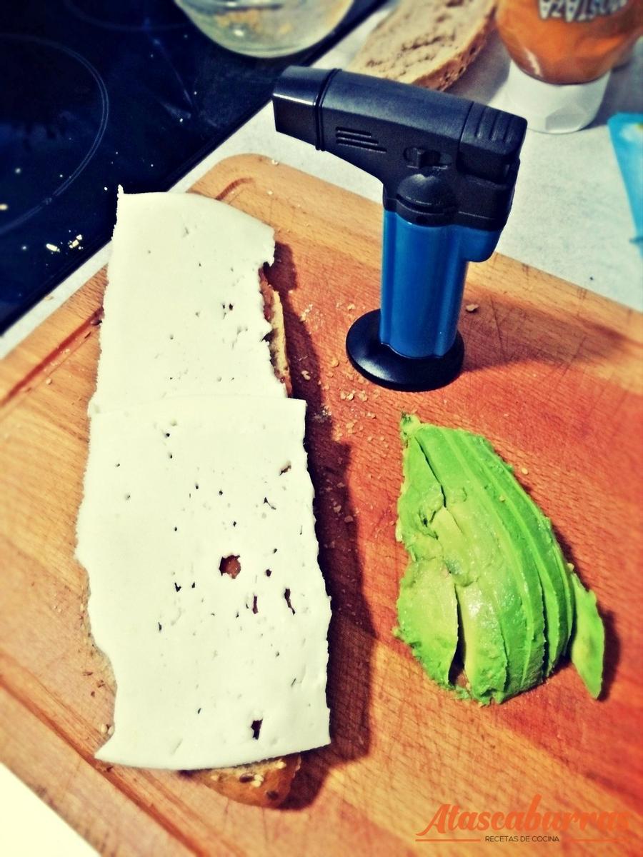 Una vez fundido, colocamos el aguacate en láminas por encima