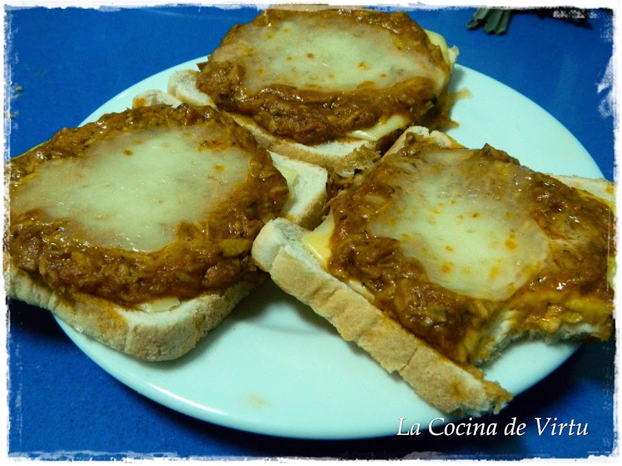 Ponemos encima la mezcla de tomate y atún que hemos preparado.