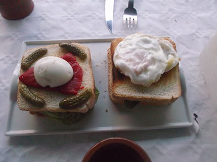 Antes de servir, freímos dos huevos fritos y los colocamos en los sándwiches que nos restan con el pimiento solito.