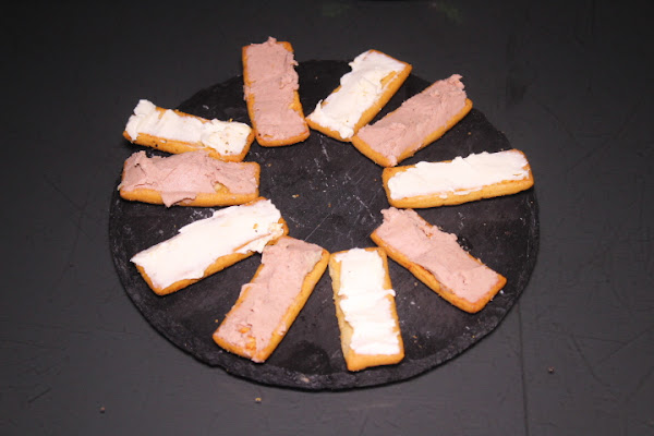 Colocamos en un plato redondo, alternadamente una tostada de cada y servimos.