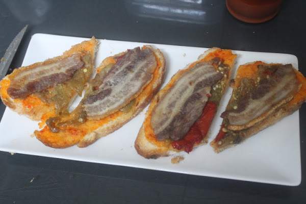 Como el otro día compre un blíster de lonchas de tocino para darle un poco de jugosidad a un estupendo estofado de ternera, tenía que consumir el tocino con algo y opte por unirlo a unas deliciosas rebanadas de pan de payes tostaditas.
