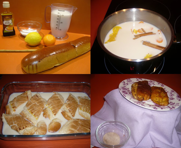 Preparamos el recipiente dónde las vamos a dejar a remojo. El tiempo de remojo dependerá del pan. Calcular unas dos o tres horas dándoles la vuelta de vez en cuando. Cuando veamos que ya no absorben más leche ya está.