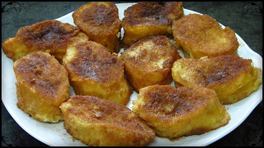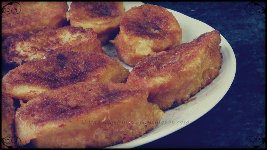 Las torrijas, pues se hacen con el pan duro del día anterior y pueden ser de leche o vino, ponerlas en almíbar, llevar miel, canela y azúcar, etc...