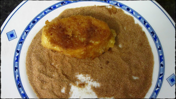 Sacarlas a un plato con papel absorvente para que cojan el exceso de aceite y después pasarlas por la mezcla de canela y azúcar.