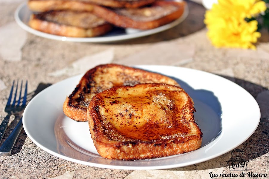 El nombre de la receta es un poco misterioso. Parece ser que fue creada en Europa para aprovechar el pan del día anterior, de hecho en Francia se conoce como "Pain perdu" (pan perdido). Incluso parece ser que en la época de los romanos existía una versión de esta receta, pero es en Estados Unidos dónde se han hecho más populares y de dónde proviene su nombre más conocido, "French toast". En algunos sitios de América se conocen como German toast, spanish toast o en Inglaterra como poor knights of Windor...sea como sea el nombre que tengan, estás buenísimas, aunque no son para comerlas todos los días, porque tienen calorías por doquier...