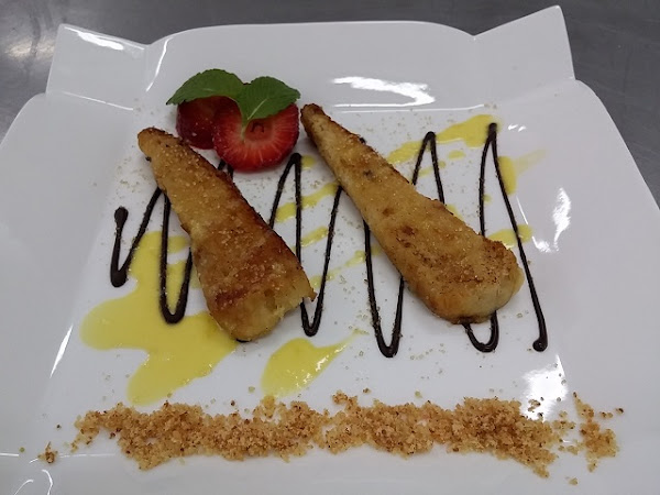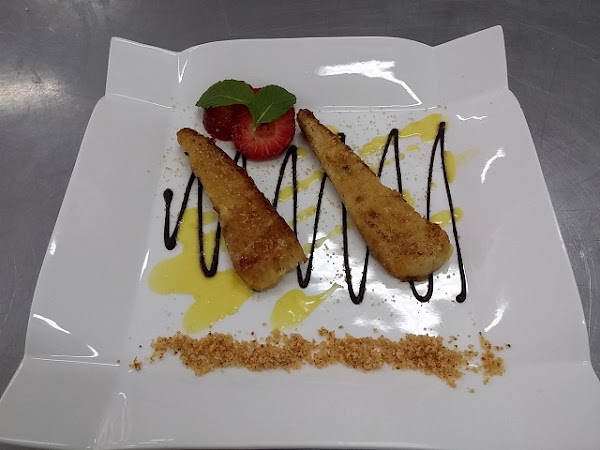 Preparación: En un cazo calentar la nata (crema de leche) con el azúcar y la vaina de vainilla, Separar del fuego cuando esté bien caliente pero sin hervir y dejar infusionando la vainilla hataa que la nata (crema de leche) esté fresca. retirar la vainilla y añadir los huevos batidos. batir bien y mojar en esta crena las rebanadas de brioche. Una vez remojadas, fundir de poco en poco la mantequilla en la sartén e ir dorando por ambos lados las rebanadas mojadas en la crema, cuidando de que se doren ligeramente pero no se quemen. La mantequilla se quema muy pronto por loque sería bueno añadir unas gotas de aceite de oliva suave. Una vez hechas las tosatadas servir o emplatar al gusto, coin crema inglesa, salsa de chocoalte, frutas, helado... o simplemente con un poco de azúcar. Depende si lo vamos a tomar como postre o como desayuno o merienda
