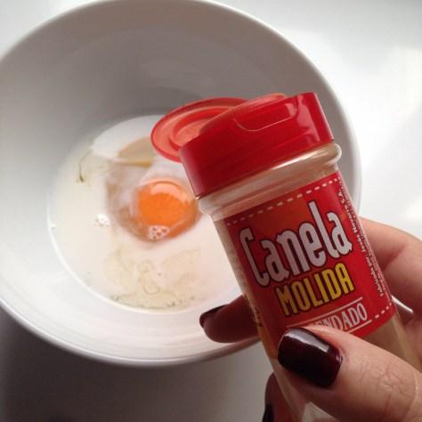 Ponemos en un bol el huevo, la leche y la canela al gusto