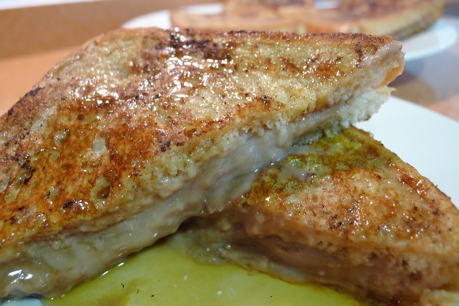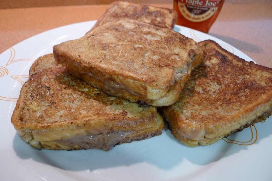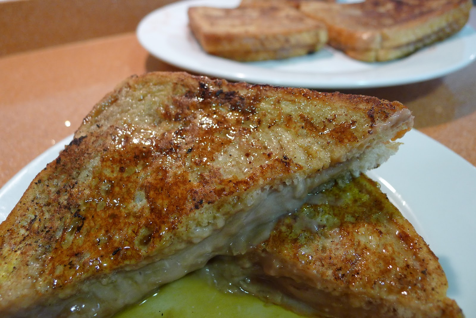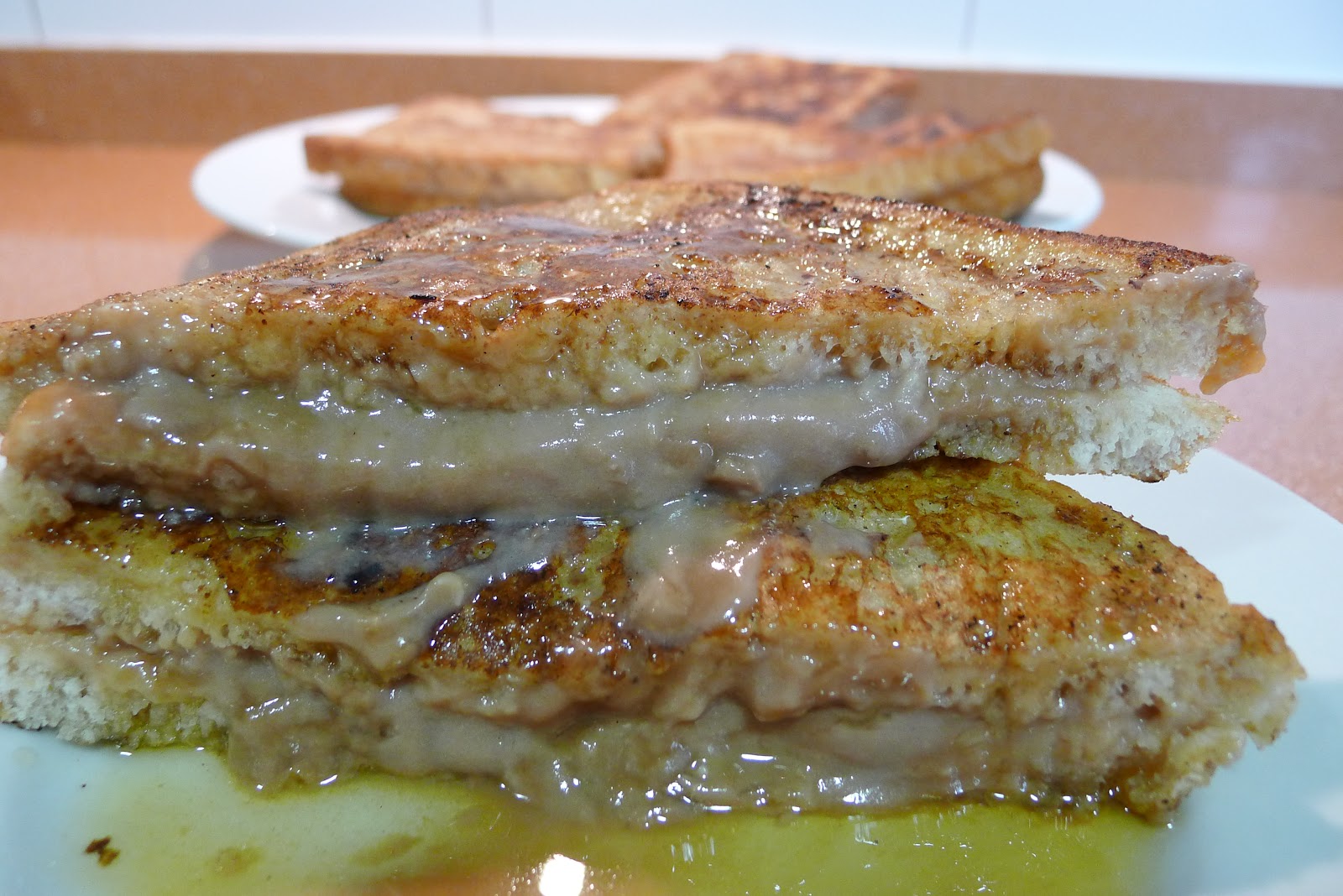 Vamos untando cada rebanada de pan con la crema (no demasiada pues se nos saldria facilmente) y juntamos de dos en dos,las pasamos por huevo batido,al que habremos añadido el azucar,una chispa de canela molida al gusto y el chorrito de leche y las tostamos en una sarten con un poco de mantequilla fundida,vuelta y vuelta dorandolas pero cuidando que no se nos quemen (fuego medio).Sacamos,y servimos calentitas regadas con el jarabe de arce o con lo que mas nos guste.Ahora ya solo nos falta un buen cafe o chocolate para compañar este delicioso desayuno.Gustais?