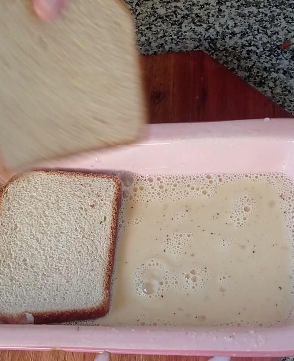 Poner el batido en un recipiente donde puedas sumergir las rodajas de pan