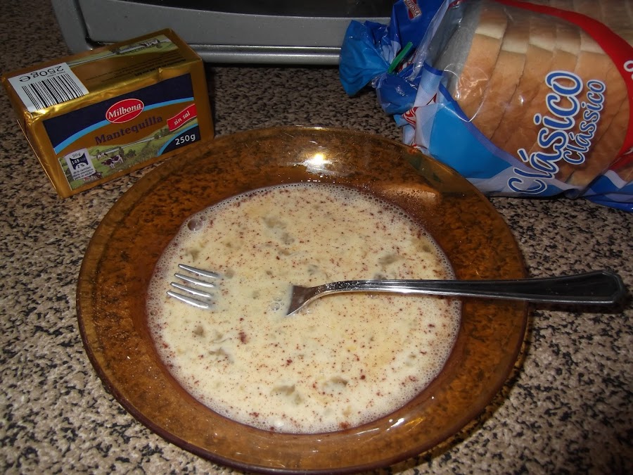 Esta receta es mejor cocinarla en una plancha, aunque como yo no tenía ninguna a mano decidí utilizar una sartén, eso sí usar una antiadherente para que no se os peguen las tostadas. Lo primero que vamos a hacer es cascar el huevo en un plato hondo y batirlo. A continuación, agregáis el azúcar y la canela. Le dais un par de vuelta y le echáis la leche para aligerar un poco la mezcla y que el pan se empape mejor.