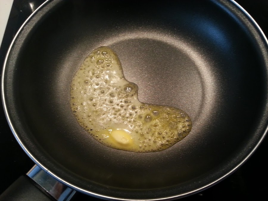 2. - Ponemos un poco de mantequilla en una sartén a fuego medio fuerte.